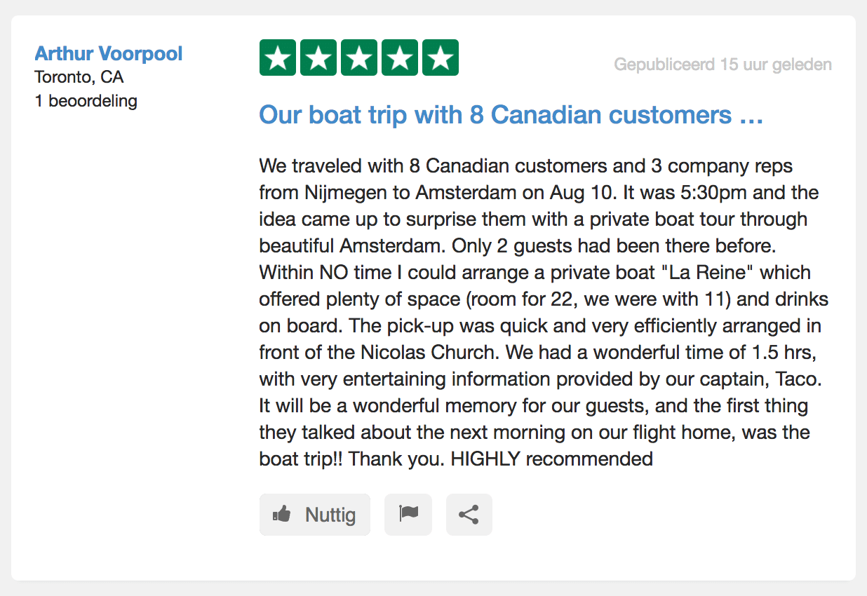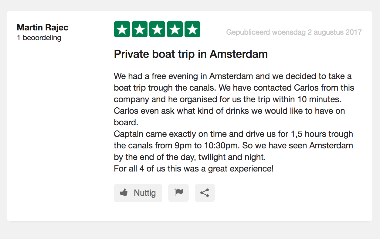 We help all our clients with great pleasure to ensure a memorable and pleasant boat trip in Amsterdam for them and their guests.