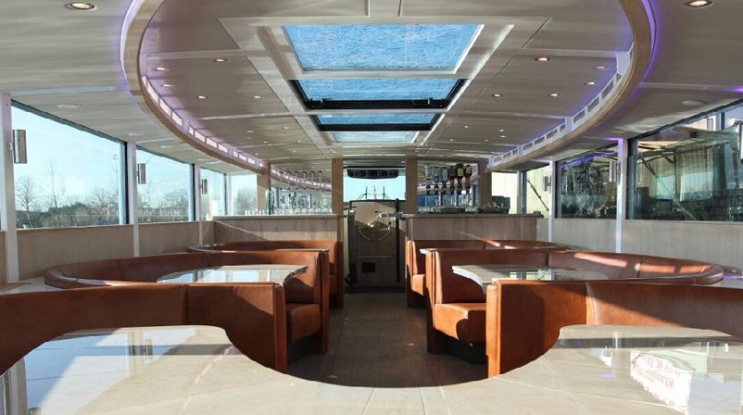 In short; On this saloon boat you can get all sides! Inquire about the group arrangements and plan a fun trip on this unique modern saloon boat.