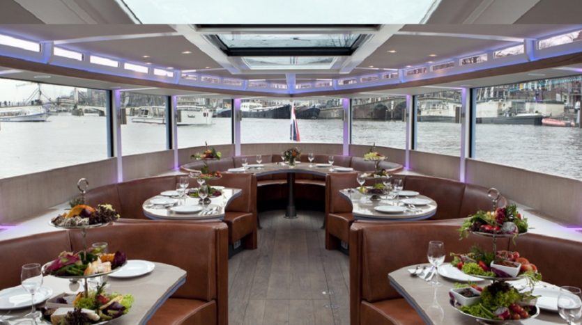 Also, the saloon boat is very quiet by the electric drive mechanism, and you always have a nice and clear view to enjoy Amsterdam.